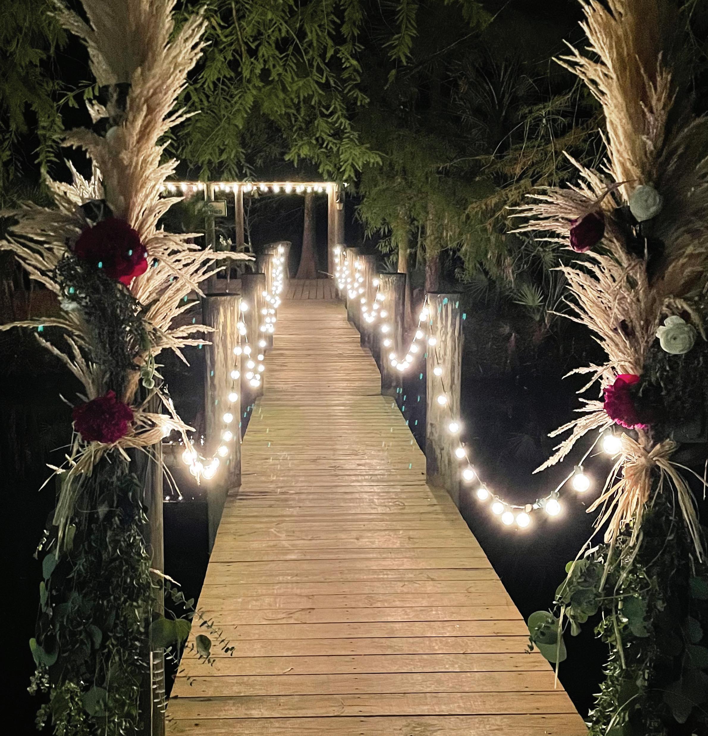 Thank you for considering Southern Palm for your wedding! We are delighted that you are interested in our beautiful grounds and are committed to making certain that your event is everything you hope for. Our outdoor wedding venue is a private paradise where you can create the perfect wedding for you! Situated on 20 picturesque acres, the property offers several ceremony sites, paved areas for cocktail hour and reception, twinkling bistro lights, and so much more. Whether you are dreaming of rustic elegance, a tented soiree, or an intimate celebration, Southern Palm is the perfect canvas to design the wedding of your dreams.