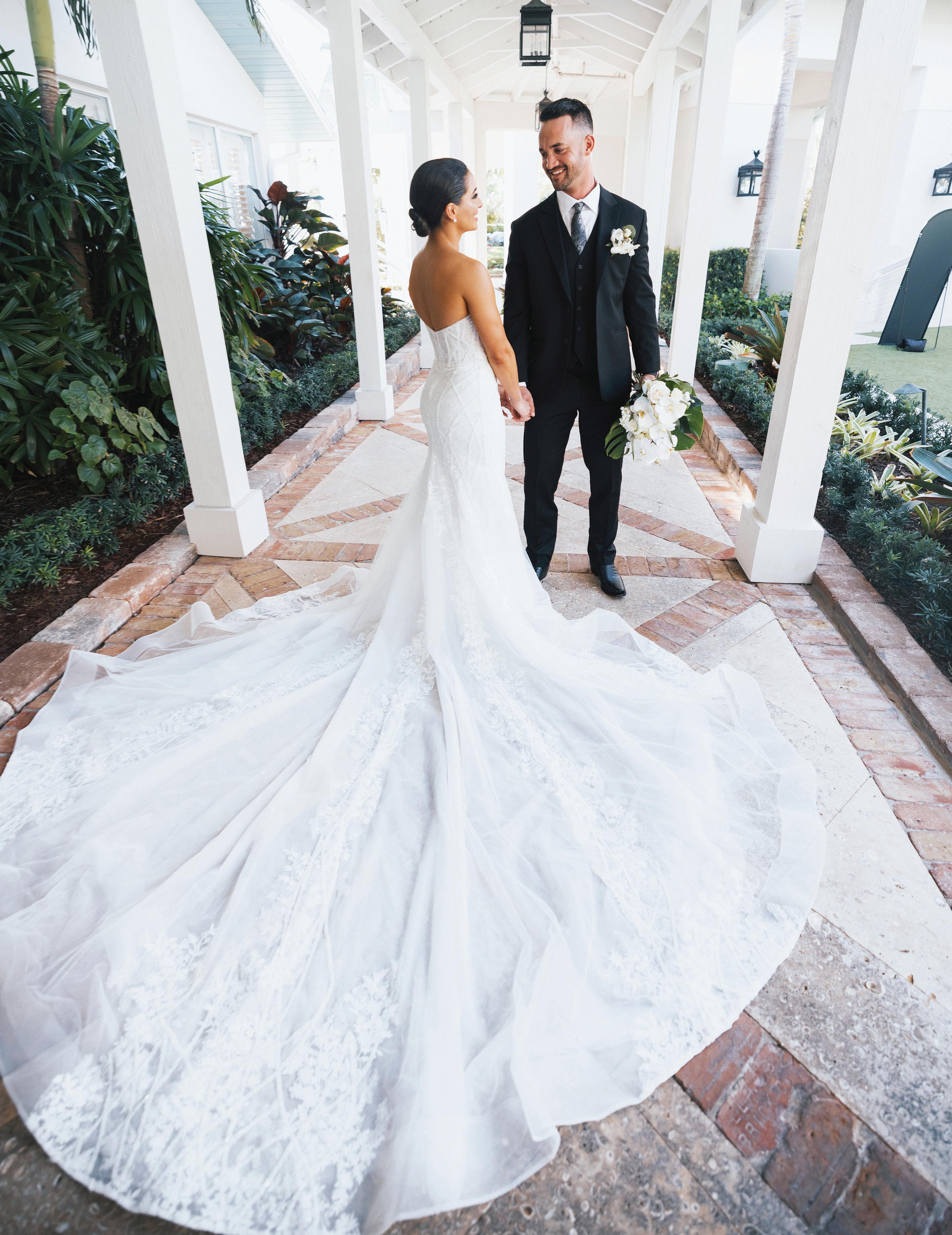 Their love story is a beautiful testament to fate, joy and family traditions, making their special day unforgettable. The journey of Amanda and Thomas began in college at Florida Atlantic University, specifically at Blue Martini in Boca Raton. Their meeting was nothing short of serendipitous. As Thomas approached Amanda, his charming pick-up line, “You have the most beautiful smile I’ve ever seen,” immediately caught her attention. Amanda playfully responded, “How many girls did you say that to tonight?” It was this exchange that sparked a connection, with Thomas knowing in that moment that Amanda was the