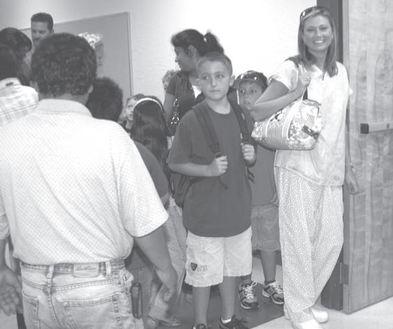 The 2007-08 school year started Wednesday. For most students, it was a return to the classroom settings to which they have grown accustomed. But at the newly opened Emerald Cove Middle School in Wellington, it was a new start entirely. Pictured above are Genesis and Alexa Morow, their friend Alexis Gonzalez with dad Miguel on their way to Emerald Cove Middle School Wednesday morning. MORE PHOTOS, PAGE 19A