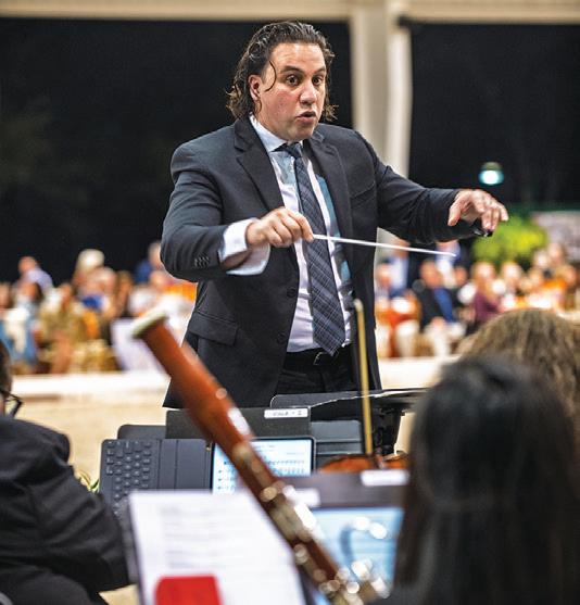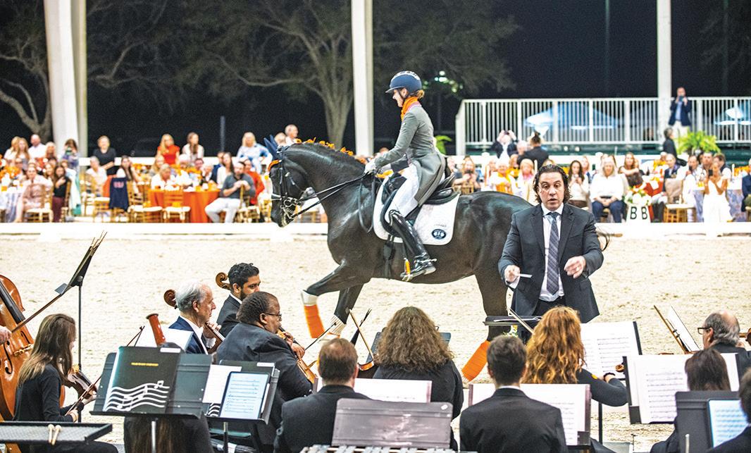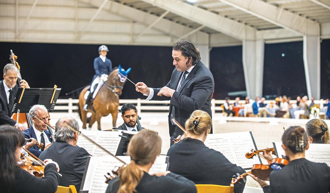 Brooke USA hosted its annual Divertimentos & Dressage fundraiser to help bring awareness and raise money for working horses around the world. The event took place at the Jim Brandon Equestrian Center on Thursday, Feb. 12. The Palm Beach Symphony, led by Maestro Alberto Bade, played an accompaniment of classical pieces as top dressage riders performed in the ring. Shown here, Bade leads the symphony