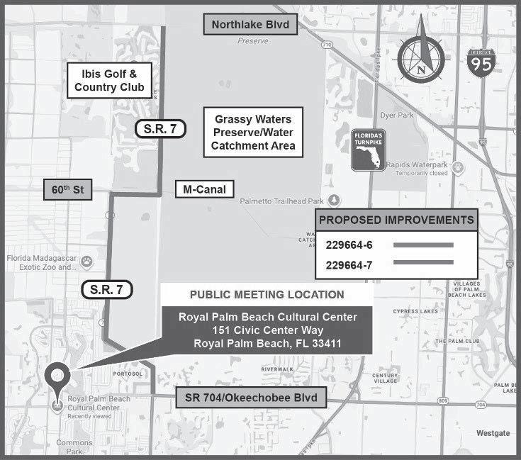 On Tuesday, Feb. 24 at 5:30 p.m. the Florida Department of Transportation (FDOT) will hold a virtual meeting on the longdelayed plans for construction of State Road 7 from 60th Street North in The Acreage to Northlake Blvd.