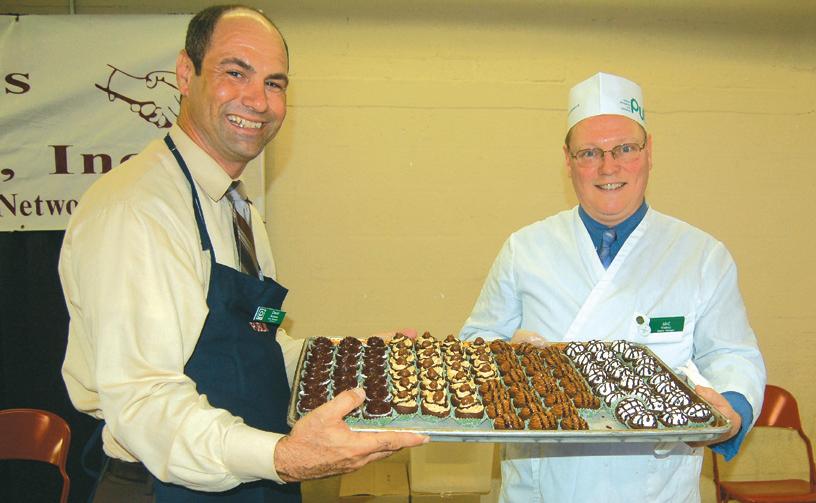 The Palms West Chamber of Commerce held its Tenth Annual Taste of the West & Chocolate Lovers Festival on Thursday, June 7 at the South Florida Fairgrounds. Sponsored by National City Bank, the event featured food tastings from the area’s favorite restaurants, as well as entertainment and business exhibitions. (Above) Special guest “Mr. Food” Art Ginsburg (center) with Amy Steinhauser, Meeghan Gehring, Colin Johnson and Brenda Browning. (Below) Publix Store Manager David Amazzo and Bakery Manager Mike Vostrejs from the Publix at Crestwood Square invite visitors to sample chocolate desserts. MORE PHOTOS, PAGE 42A