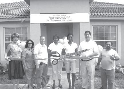 The Palms West Chamber of Commerce ambassadors recently held a ribbon-cutting ceremony for the Balmore House Adult Family Care Home located at 12137 86th Road N. in The Acreage. Owner Fae Smith, a registered nurse, has provided exceptional caring for adults and aging individuals in semi-private and private rooms. Services provided at Balmore House Adult Family Care Home include personal daily assistance, meals, utilities, 24-hour registered nurses and educational programs. Laundry and weekly housekeeping are all included. For more information about the Balmore House Adult Family Care, call (561) 644-7753 or e-mail smithfae @yahoo.com. For more information about the chamber call (561) 790-6200. Pictured here are Palms West Chamber of Commerce Membership Director Debi Leed, Maggie Zeller, Eric Gordon, Balmore owner Fae Smith, Director of Operations Tania Cohen, Director of Community Relations David Cohen and Keith Jordano.
