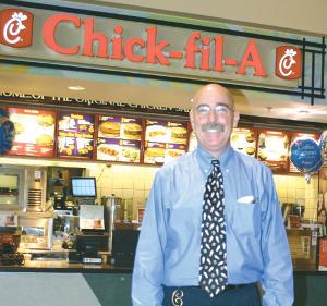 Everything Chicken — (Above) Chick-fil-A franchise owner Robert E. Rabenecker Jr. in front