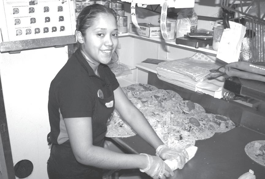 of his restaurant in the Mall at Wellington Green. (Below) Employee Angie Perez prepares a wrap in the Chick-fil-A kitchen.
