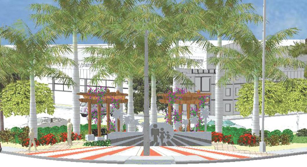 After several postponements, the Royal Palm Beach Village Council last week approved a “public art feature” to beautify the northwest corner of the intersection of Royal Palm Beach and Okeechobee boulevards. The feature is intended as an entranceway for a new CVS Pharmacy, which will be part of a planned commercial development at that corner. Conceptual drawings provided to the village indicate a design that echoes the elements of the village logo, with a decorative arrangement of red and white brick pavers, a central plaque noting the village’s incorporation in 1959 and one or more metal sculptures of the three family members and palm trees in the logo, along with trellises and landscaping, including trees.