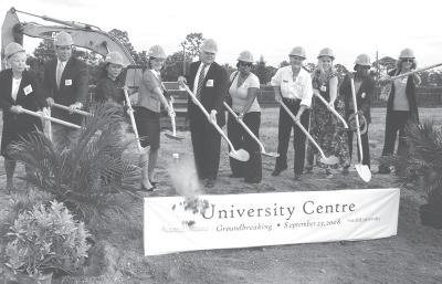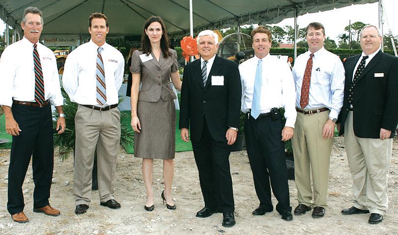 South University and the Rendina Companies hosted a groundbreaking ceremony on Tuesday for the coming 100,000-square-foot, three-building University Center development at the corner of State Road 7 and Belvedere Road. The university expects to move its operations there in the fourth quarter of next year. Pictured above are Jay Huffman and Adam Young of W.G. Mills, Heather Askew and John Peterson of South University, Peter Reed of the Rendina Companies, Tim Hensey of W.G. Mills and Brian Mock of Rendina Companies. STORY & PHOTOS, PAGE 7