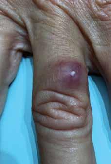 Merkel Cell carcinoma, like other skin cancers, has a predisposition for appearance in sun-exposed areas such as the face or sometimes the hands or digits. They usually do not appear in younger individuals and tend to arise more frequently in those with immunodeficiency. Merkel cell carcinomas present as a nonspecific papule or nodule. Because it can initially be misdiagnosed as a benign cyst, the actual pathology of the tumor may be delayed. Additionally, Merkel cell carcinoma is typically asymptomatic in the beginning, and this also adds to delay in diagnosis as many patients are not concerned until the fast-growing tumor reaches a large size.