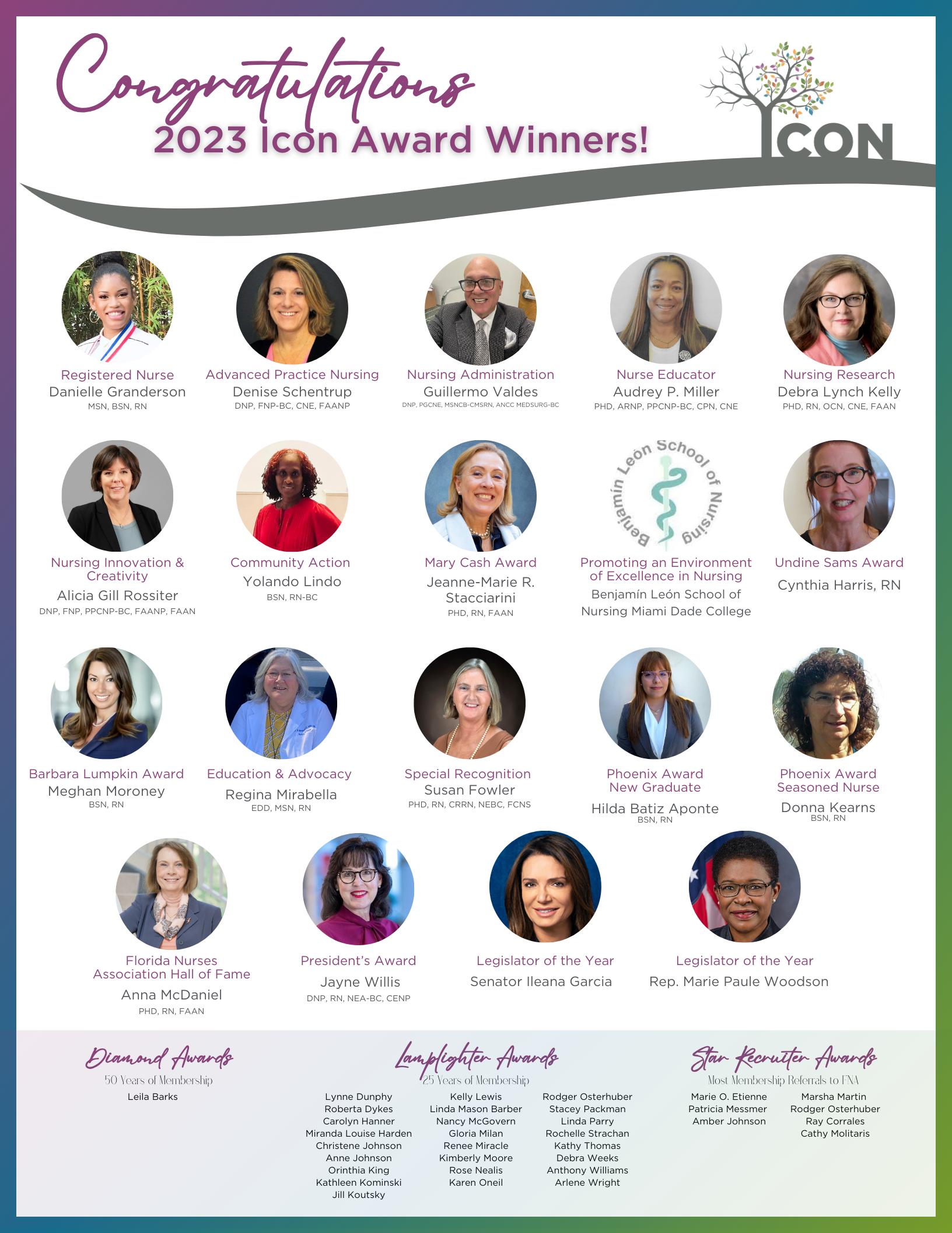 I would like to recognize and thank the Board of Trustees for their commitment and service to the Foundation and nursing in Florida: Frances Downs (Vice President), Debbie Conner (Treasurer), Barbara Russell (Secretary), Marie Etienne, Stacy McClelland, Bill Pierce, Guillermo Valdes, Selma Verse, and Jayne Willis.