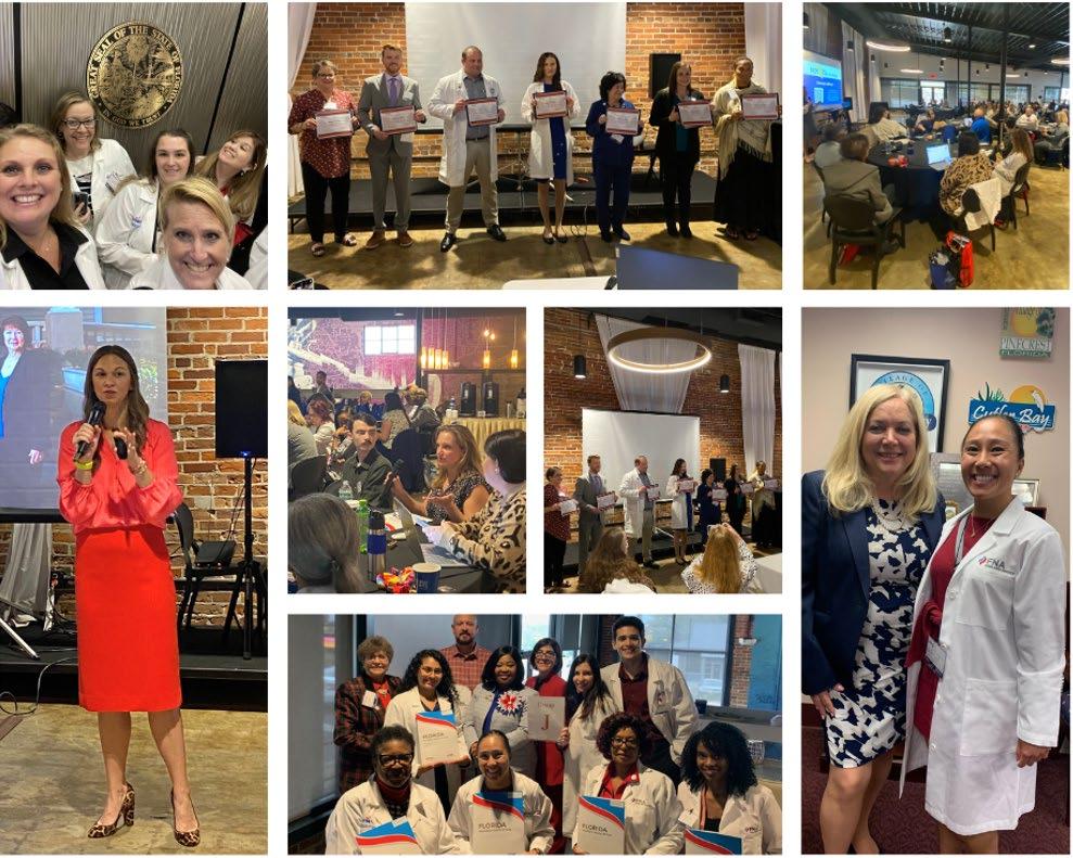 One of the most important and critical factors for me as a leader is establishing trust and allowing others to approach me without fear. I intentionally share my vulnerability in that I don’t know everything, but am always willing to learn from my peers/colleagues with the outmost respect, kindness, and humbleness. I firmly believe with open and effective communication, cultural humility, empathy, and trust, we can overcome any challenges that come in our way. To begin my journey as president, I first requested a meeting to meet with all past Presidents of FNA seeking their input, guidance, wisdom, and pearls for best practices on how to best lead in FNA. They shared very insightful challenges, ways to take the association to newer heights, encourage engagement, and stay connected. I truly value these trailblazers/past FNA Presidents who were in attendance: Dr. Janice Adams, Immediate Past President, Dr. George Peraza-Smith, Dr. Marva Kear, Dr. Leah Kinnaird, Dr. Andrea Greggs, and Dr. Patricia Quigley. They have paved the way for all of us and left their own legacies. We also had the Board of Directors orientation, meeting and retreat at the beautiful Margaritaville Resort in Orlando, Florida on November 17 & 18, 2023. I was filled with gratitude and a heartfelt appreciation to Mr. Bob Harris, CAE for a great refresher on Fiduciary responsibilities, strategic planning implementation, etc., Willa Fuller, Executive Director for reviewing the leadership manual, Dr. George Peraza-Smith, Treasurer for the Budget review and approval, Katlin Scarbary for addressing Board Planning and Calendar, New Graduates Initiatives, membership updates, etc. and the entire Board/guests in attendance especially Mrs. Wanda Sims, FNA’s new Parliamentarian.