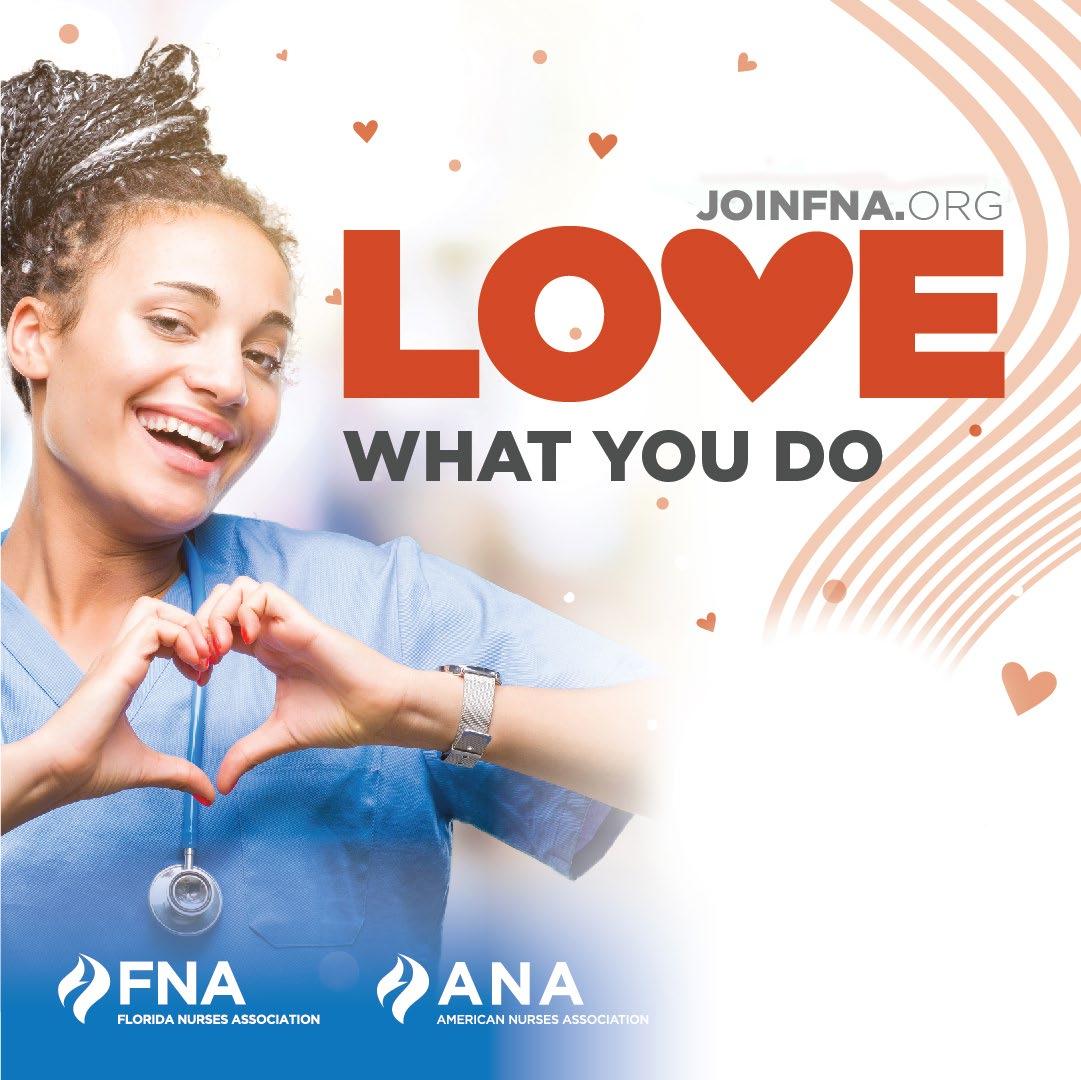 Acceptance of advertising does not imply endorsement or approval by the Florida Nurses Association of products advertised, the advertisers, or the claims made. Rejection of an advertisement does not imply a product offered for advertising is without merit, or that the manufacturer lacks integrity, or that this association disapproves of the product or its use. FNA and Health eCareers shall not be held liable for any consequences resulting from purchase or use of an advertiser’s product. Articles appearing in this publication express the opinions of the authors; they do not necessarily reflect views of the staff, board, or membership of FNA or those of the national or local associations.