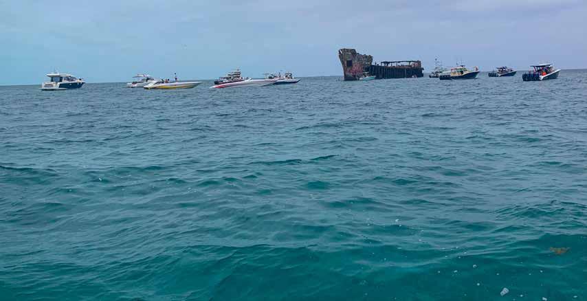 It doesn’t hurt to bring along a few pounds of squid if you want to have that close-encounter with Mother Nature’s sea creatures, and on this occasion everyone got a chance to enjoy this great experience! Saturday was equally exciting with a visit to the landmark Sapona shipwreck for snorkeling, while the most adventurous and certainly more agile voyagers climbed the jagged concrete and rustic rebar hull, for the privilege of jumping from the ships forward deck. It was content overload as these once-in-a-lifetime photos soon made their way onto dozens of IG and Facebook pages around the nation!