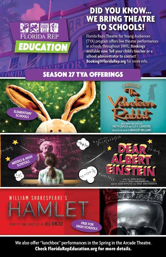 I know that this season will present a diverse array of productions that will captivate, entertain, and inspire you. From timeless classics to contemporary masterpieces, Florida Rep’s carefully curated lineup reflects their commitment to delivering high-quality, thoughtprovoking, and memorable theatrical experiences.