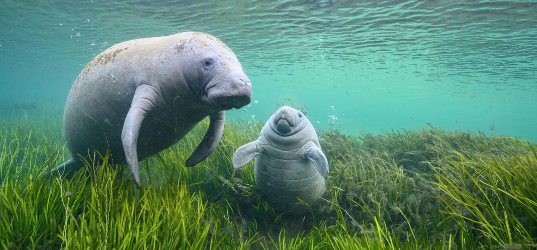 During some point in their lifecycle, about 80% of critically important commercial and recreational fish and shellfish rely on these habitats. Seagrass and SAV also serve as a primary food source for charismatic fauna, such as manatees and sea turtles. Herbivores, ranging from large manatees to the smallest of sea urchins, have been documented foraging in both naturally occurring and restored areas.