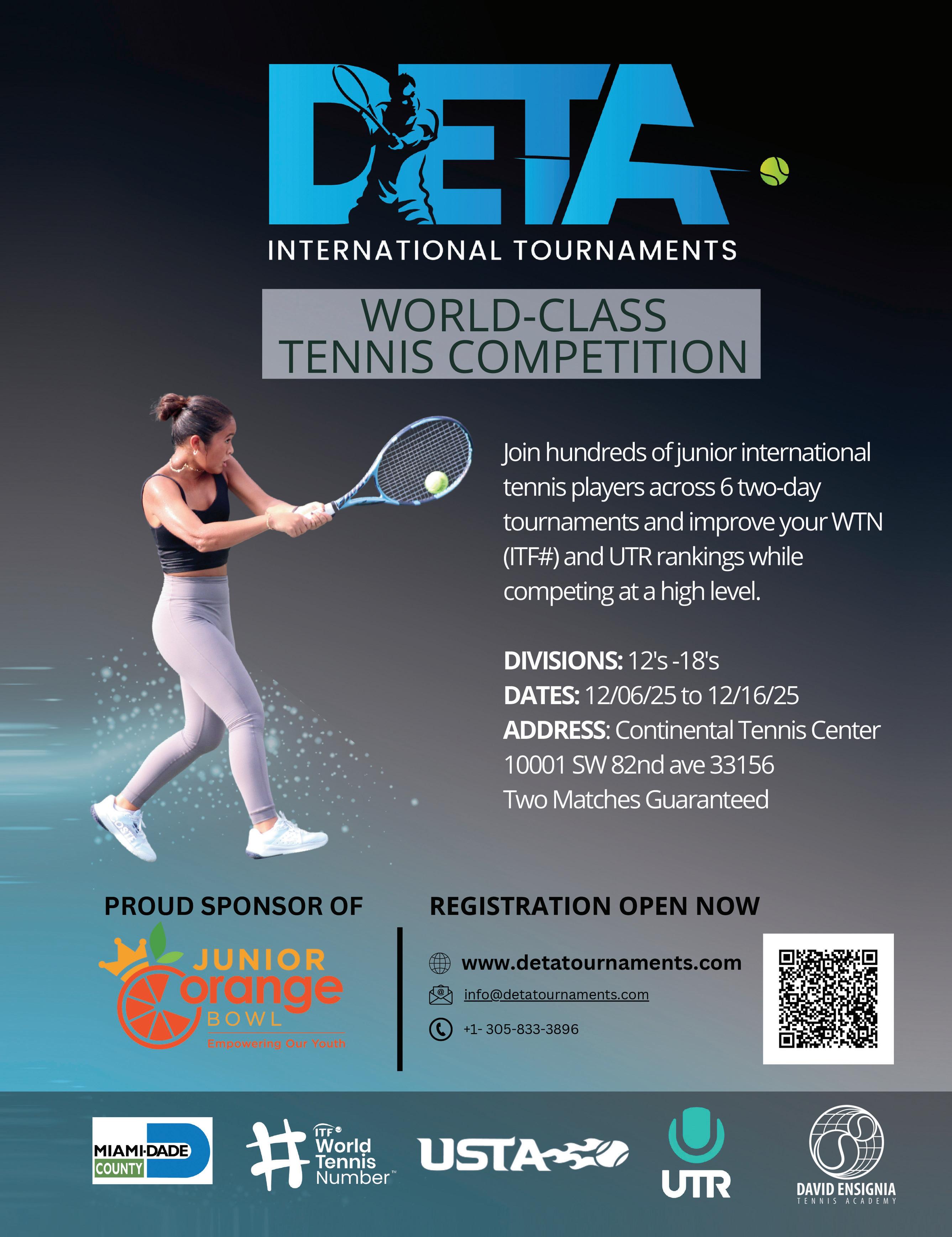 The 2025 Junior Orange Bowl will raise the bar for competitive junior tennis, ensuring that only the best players take the court. This unwavering commitment to quality will deliver a level of play more intense than ever. We want these young athletes to feel like they're competing at the highest level of tennis,” said Robert Gomez, the tournament's new director.