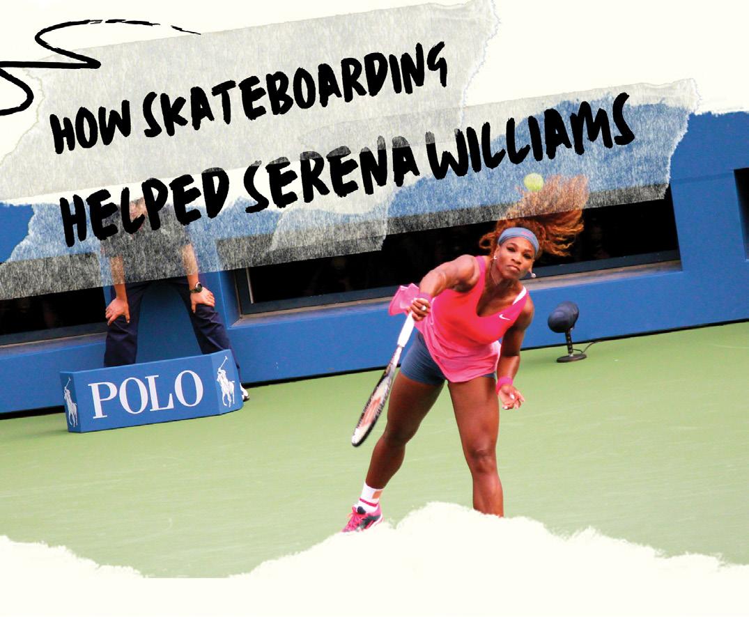Serena Williams is known around the world for tennis. Although she's originally from California, her junior training days were spent at the Rick Macci Tennis Academy in Florida. Serena's tennis improved quickly under Macci's expert guidance. But her strokes were also influenced, strangely, by skateboarding.