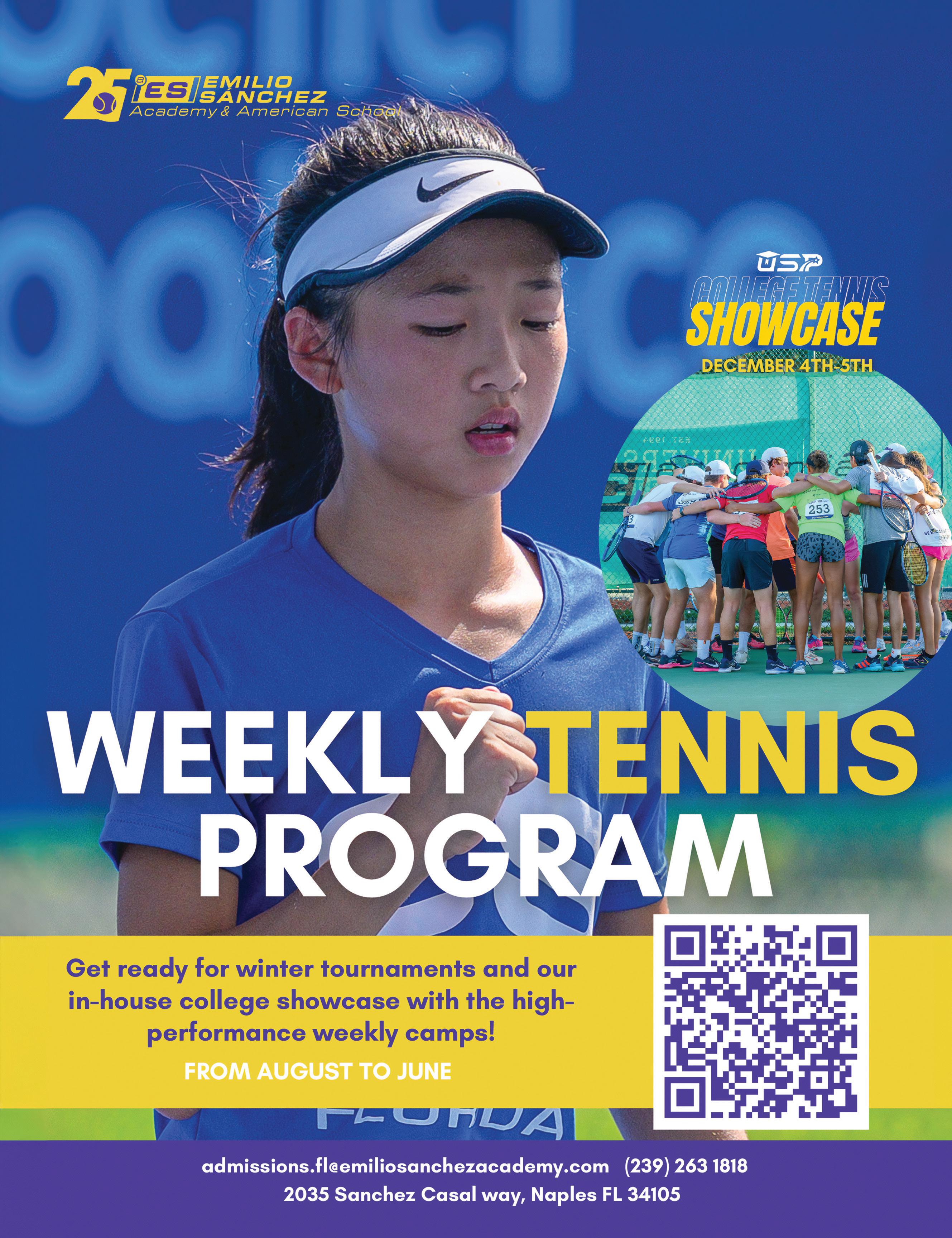 As previously detailed by the editor and publisher of the Florida Tennis Magazine, Matt Pressman, Brandon Nakashima continues his awe-inspiring comeback with a pair of impressive wins over Taylor Fritz (6-4, 5-7, 7-6 (6)) and Arthur Fils (7-5,7-6 (3)) at the Cincinnati Open at the time this issue goes to press. Nakashima mentioned how the Emilio Sánchez Academy in Naples, Florida has lots of courts nested in the alluring private club which was ideal for his pro tour resurgence.