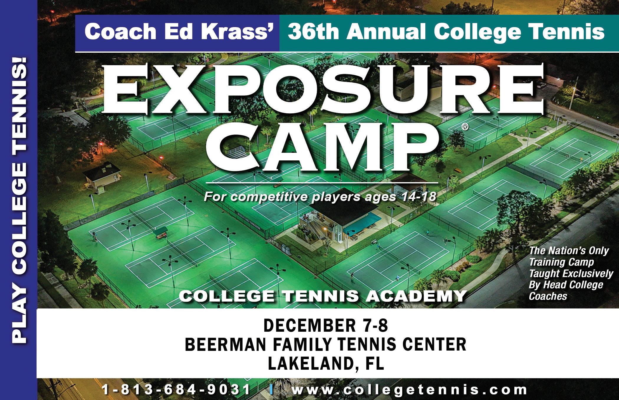 Coach Ed Krass’ 36th Annual College Tennis Exposure Camp has announced its next stop in Florida at Beerman Family Tennis Center in Lakeland on December 7-8, 2024. For more information, visit collegetennis.com.