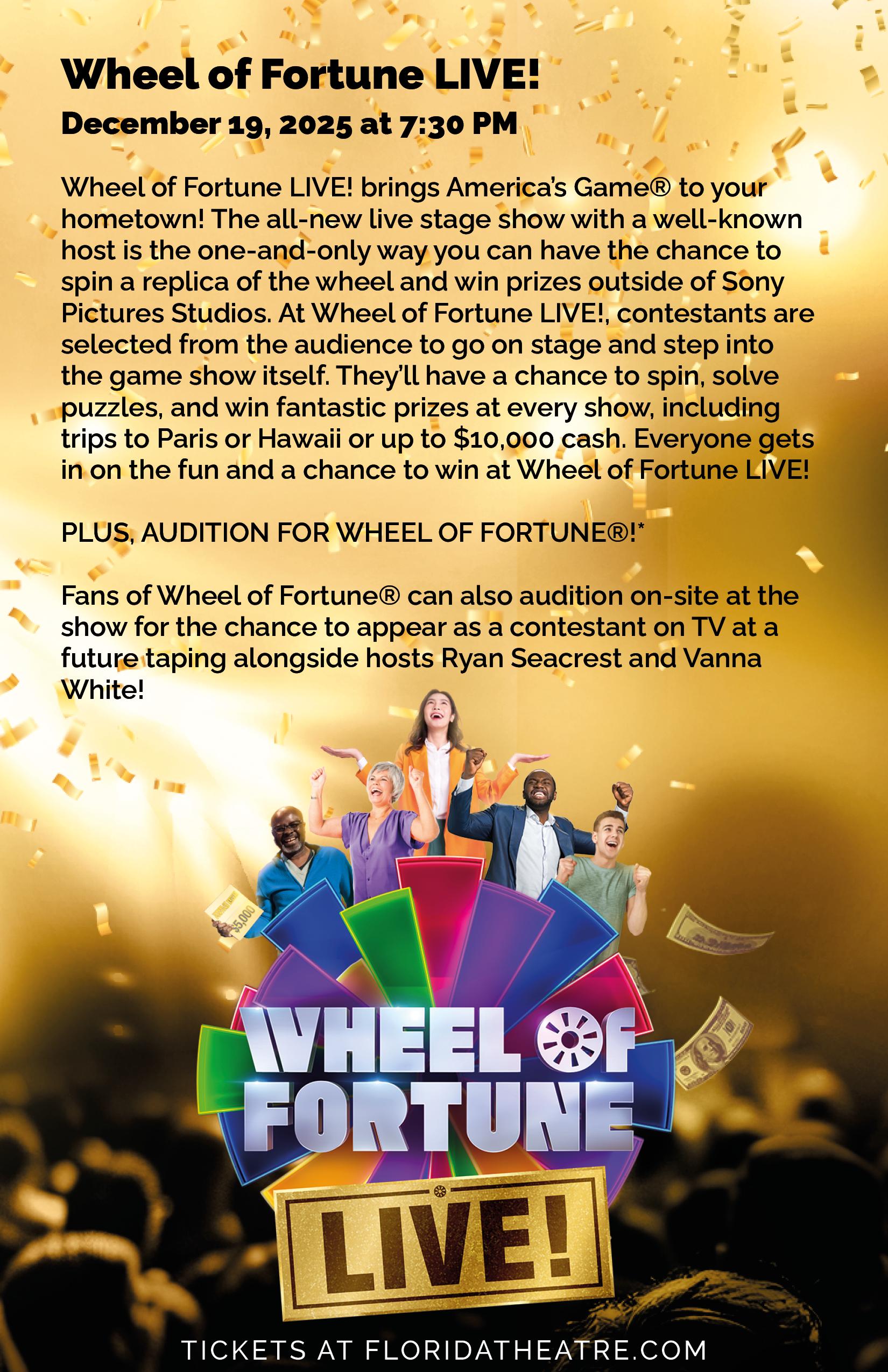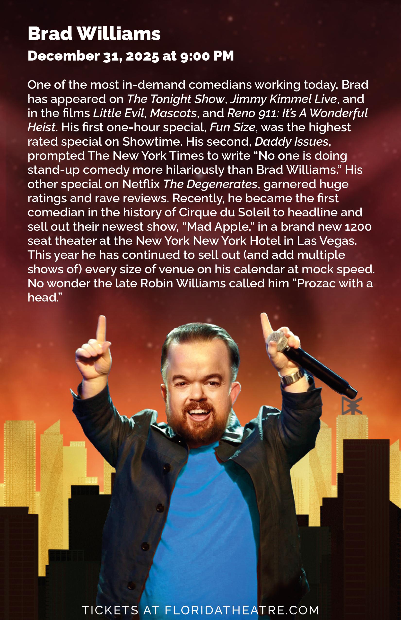 Visit our website at floridatheatre.com for coming attractions information, online ticket sales, and to support the Theatre by becoming a Member of the Florida Theatre.