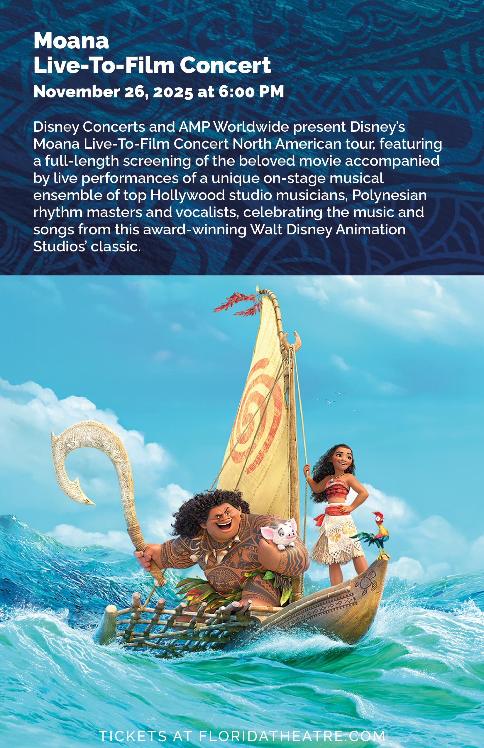 Visit our website at floridatheatre.com for coming attractions information, online ticket sales, and to support the Theatre by becoming a Member of the Florida Theatre.