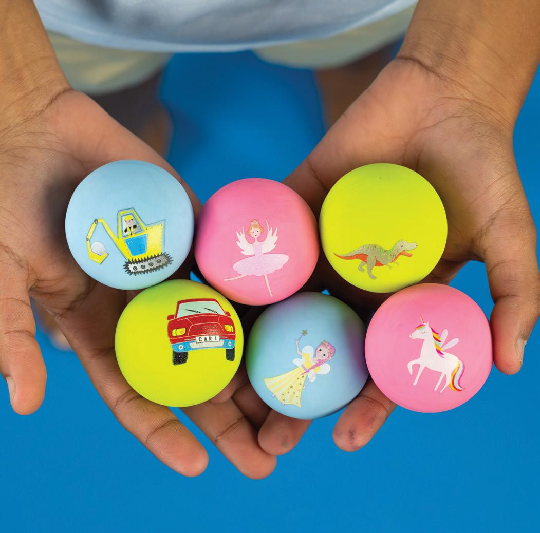 6 MIXED DESIGNS IN CDU TRAY BOUNCY BALLS