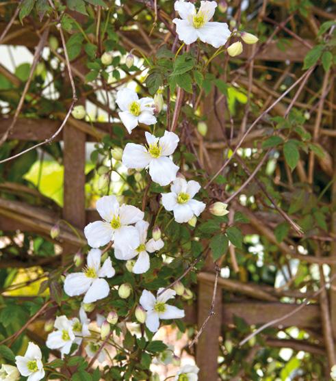 CLEMATIS MONTANA Rommelige planten die dicht naar elkaar zijn toegegroeid, kun je nu snoeien.