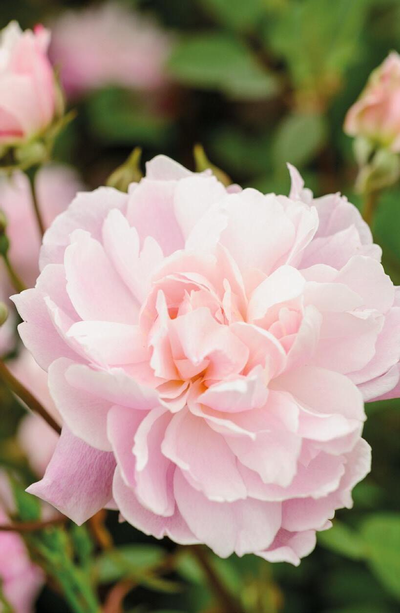 Tijdens het tuinieren ben ik dicht bij de planten en rozendoornen kunnen pijn doen. Daarom was ik heel blij toen ik ‘Mary Delaney’ ontdekte. Deze doorbloeiende klimmer heeft lichtroze, geurige bloemen en bloeit tot in het najaar, mits hij regelmatig wordt gekopt. H x B 3,75 m x 1,2 m