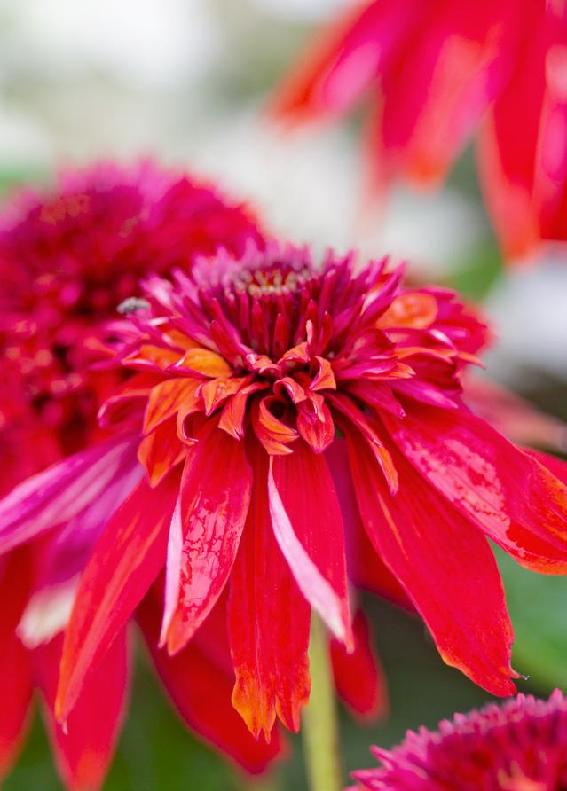 Nog niet zo heel lang geleden waren er slechts een handvol soorten Echinacea te koop. Dat waren allemaal variëteiten van de Amerikaanse Echinacea purpurea, waarvan ‘Magnus’ een favoriet was. Toen gingen Amerikaanse veredelaars aan de slag met het kruisen van de paarsen witbloemige E. purpurea met een minder bekende soort, E. paradoxa. Het resultaat waren planten met de grote, breedbloemige bloemen van E. purpurea in een reeks heldere kleuren, gecreëerd door genen van de gele zonnehoed. Een stortvloed van deze planten verscheen op de markt, en de meeste stierven in hun eerste winter.