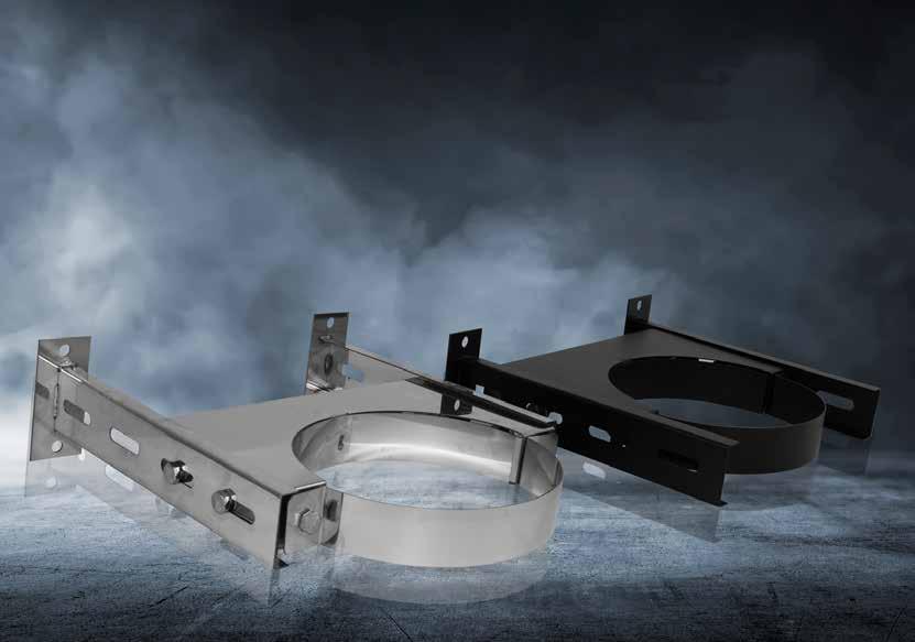 Ceiling supports are load bearing and come with support collar. Used on oil and gas installations where the flue gas temperature does not exceed 250°C or for solid fuel when passing through a non combustible floor/ceiling.