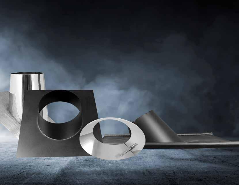 The stainless steel flashing acts as weatherproofing for the twin-wall system when used externally through a roof.
