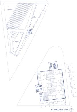 Three cores serve different zones: front core supports public functions, middle core acts as main circulation, and back core serves parking. The building is divided into public lower floors and private residential upper floors.