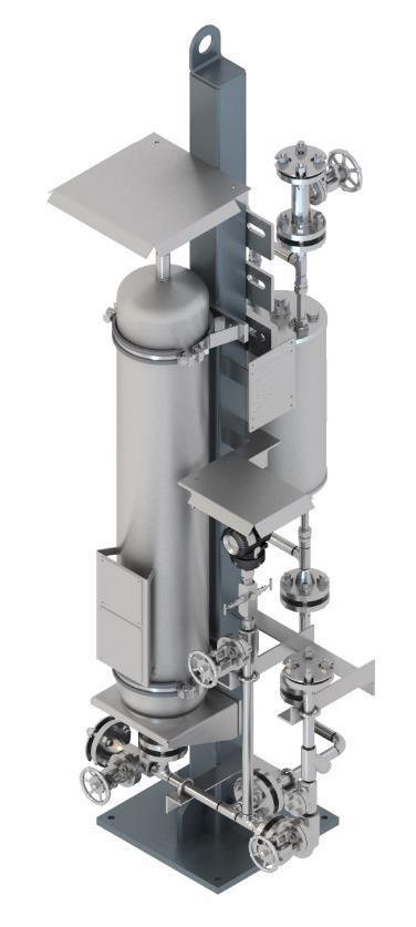 The accumulator can be mounted a substantial distance away from the barrier fluid circulating loop without any impact to the system’s performance. However, many installations will mount the heat exchanger and accumulator together on the same stand.
