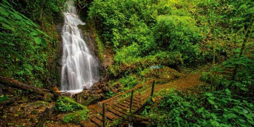 Eine fantastische Wanderroute verläu durch den «Seven Coloured Earth Geopark». Grosszügig angelegte Palmenalleen führen zunächst zu den 100 Meter hohen Zwillingswasserfällen von Charamel. Bekannter noch ist der erkaltete Lavastrom, der sich hier vor Jahrtausenden eingrub. Seitdem haben Wind und We er alle wasserlöslichen Bestandteile weggewaschen – bis auf blaue, gelbe, braune und grüne Tonmineralien.