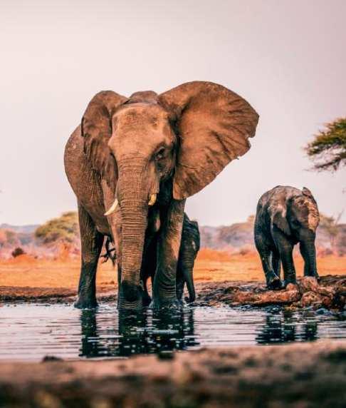 Tansania ist die Heimat einer der weltweit grössten Populationen des Afrikanischen Savannen- (oder Busch-)Elefanten. Er kann bis zu sieben Tonnen schwer werden und ist damit das grösste Tier an Land. Er durchstreift – daher der Name – den Busch oder die Savannen, zu erkennen ist er an seinen riesigen Ohren und den langen, nach aussen gebogenen Stosszähnen.