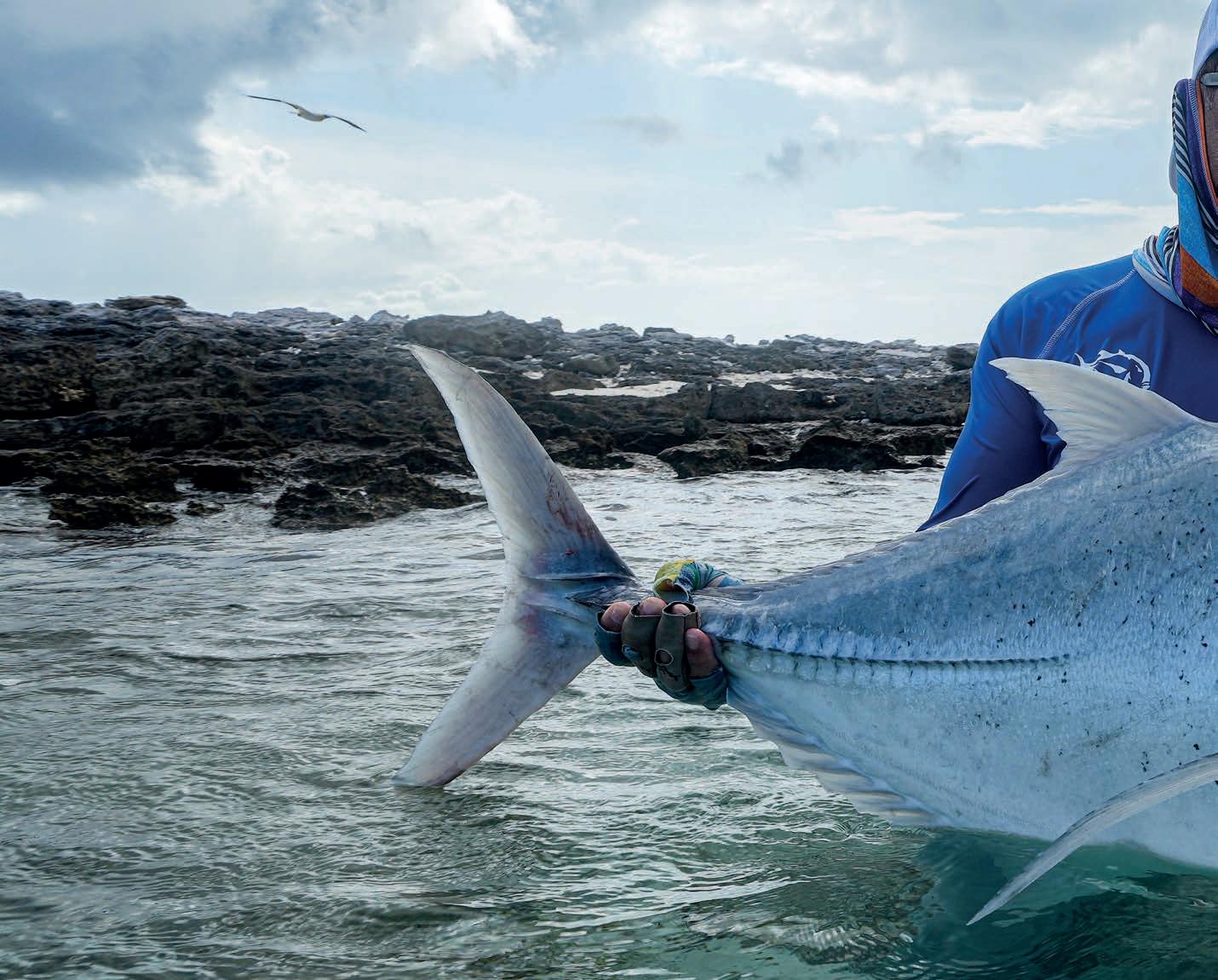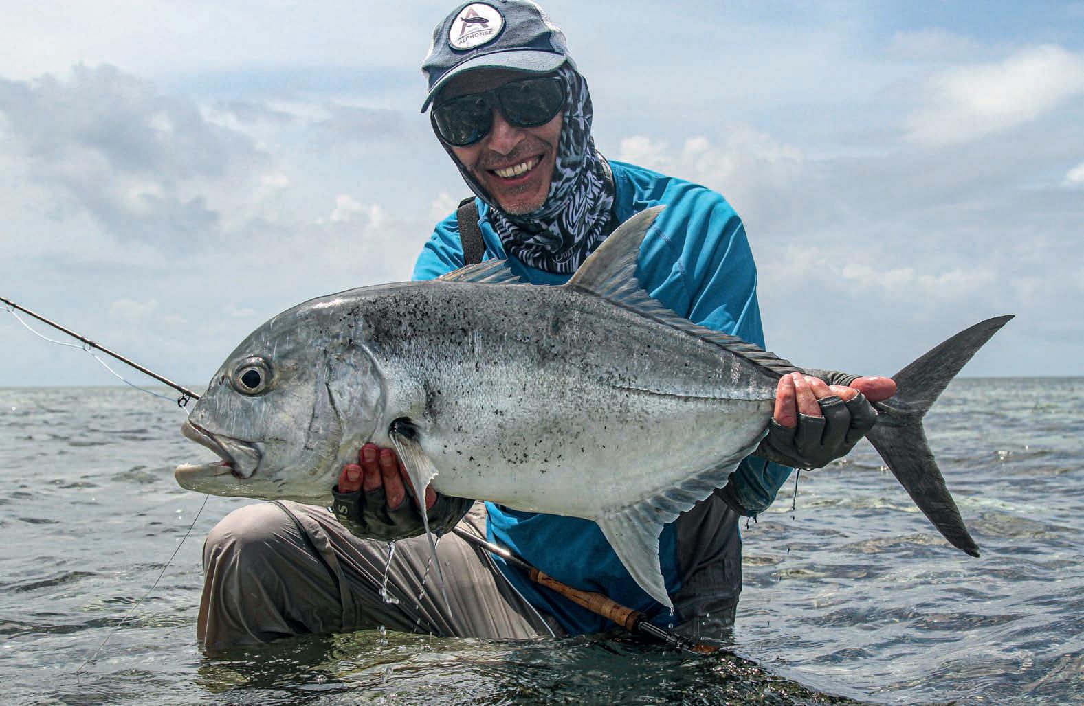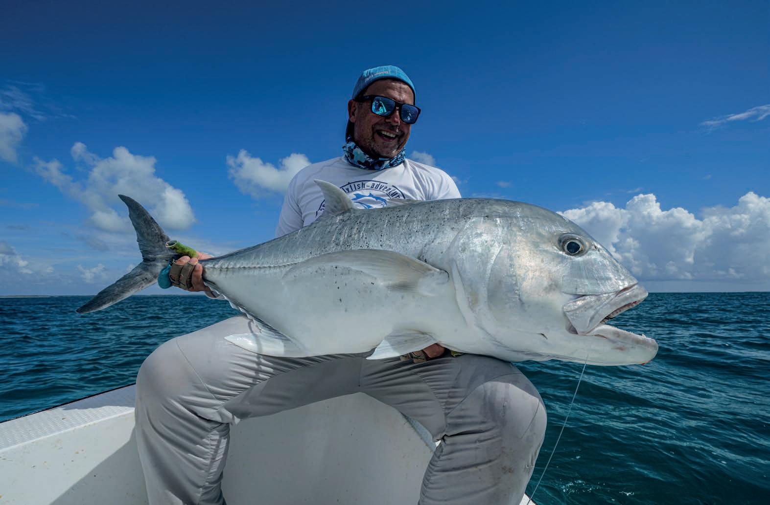 Diesmal war das Wetter unberechenbar: Wind und Regen durchkreuzten unsere Pläne. Vor allem anfangs war die Woche vom Wetter her schwierig, aber dann kamen auch Tage mit schönem Wetter und guter Fischerei. So hatten wir am Ende fünf GT mit über einem Meter. Auch Michael fing seinen ersten 100 cm plus GT und Christoph mit 117 cm den größten. Mir persönlich erschien es, dass teils viele gute Fische auf den Flats zu finden waren. Vielleicht war es schwieriger als manches Jahr zuvor, aber doch eine tolle Fischerei.