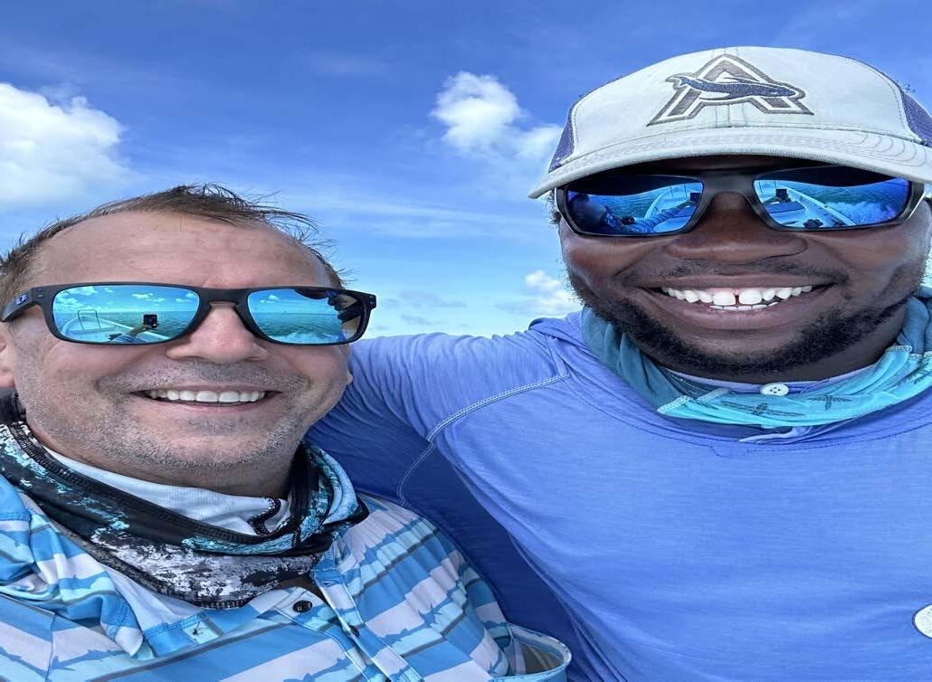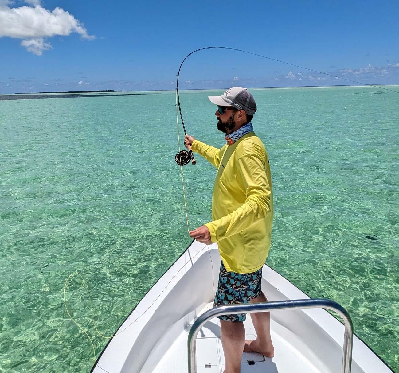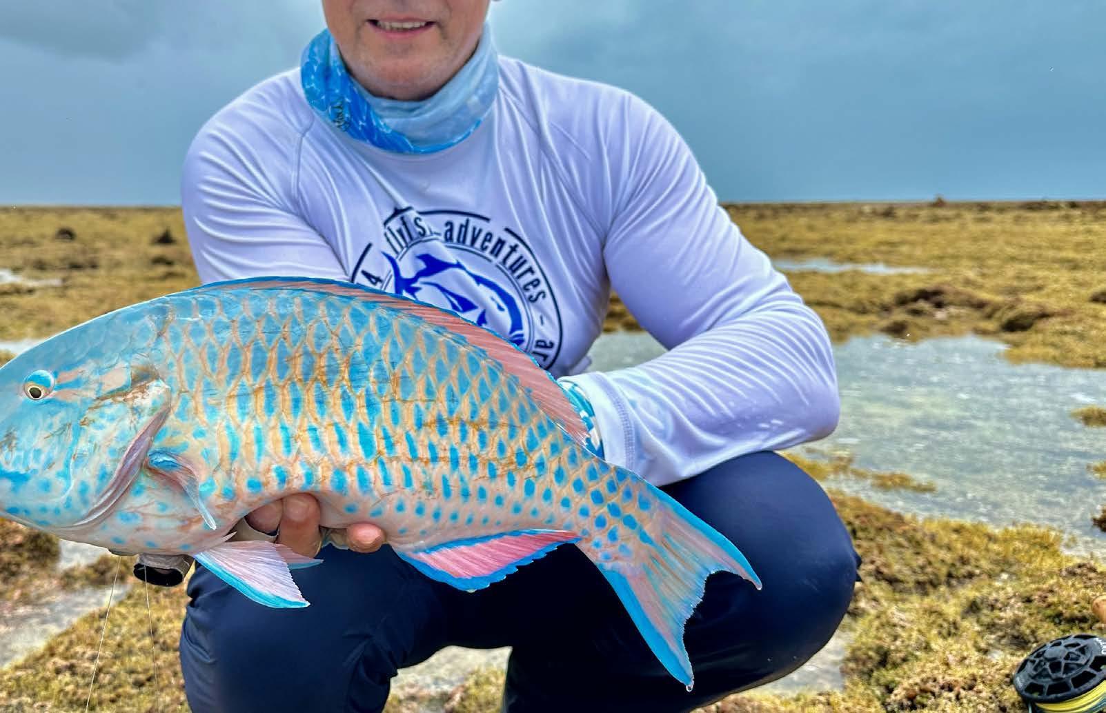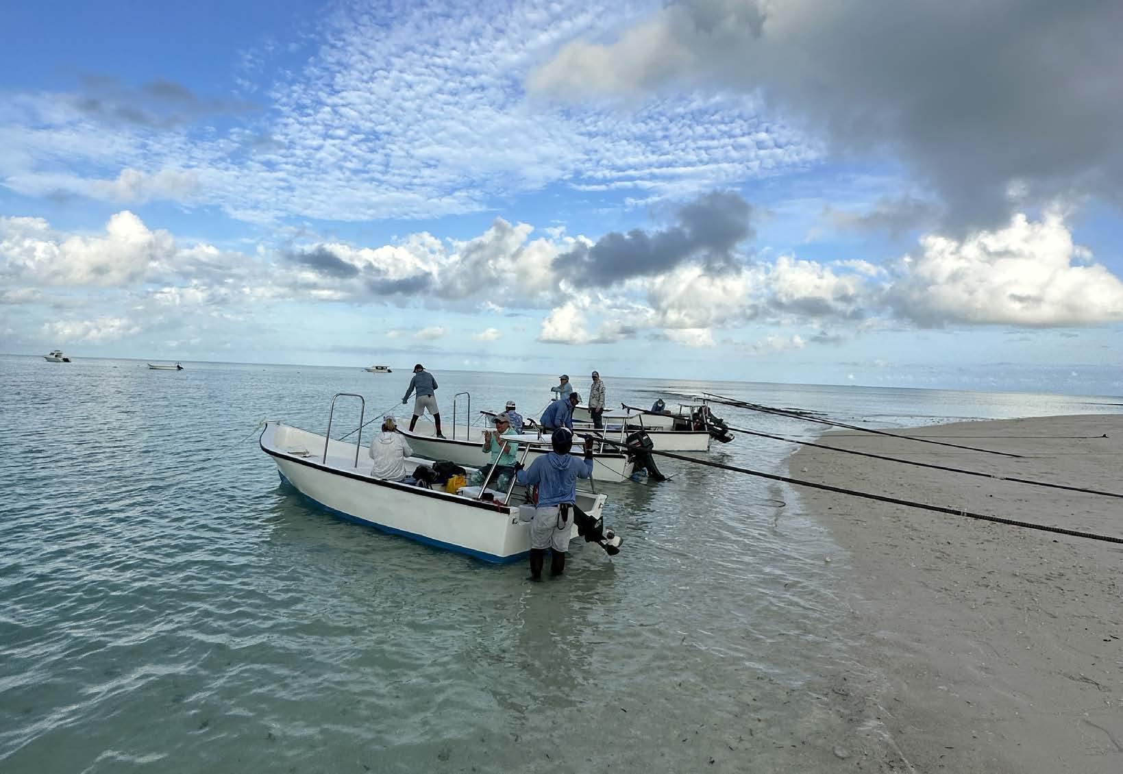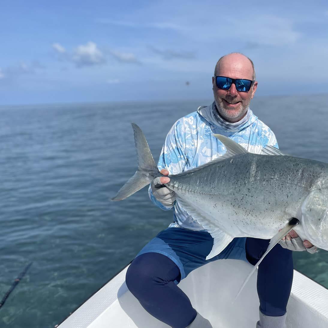Bereits am ersten Tag gelang mir ein Grand Slam – ein Trigger, ein Bonefish und ein GT. Damit nicht genug – ich konnte noch acht weitere GT’s, darunter meinen persönlichen „Best Flats GT“ mit 130 cm fangen. Joanne Hessney fing einen mit 101 cm Länge. Insgesamt konnte unsere Gruppe zum Auftakt 32 GT’s landen.