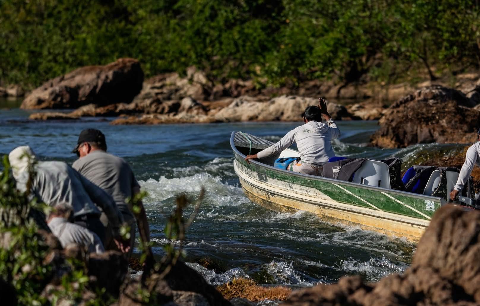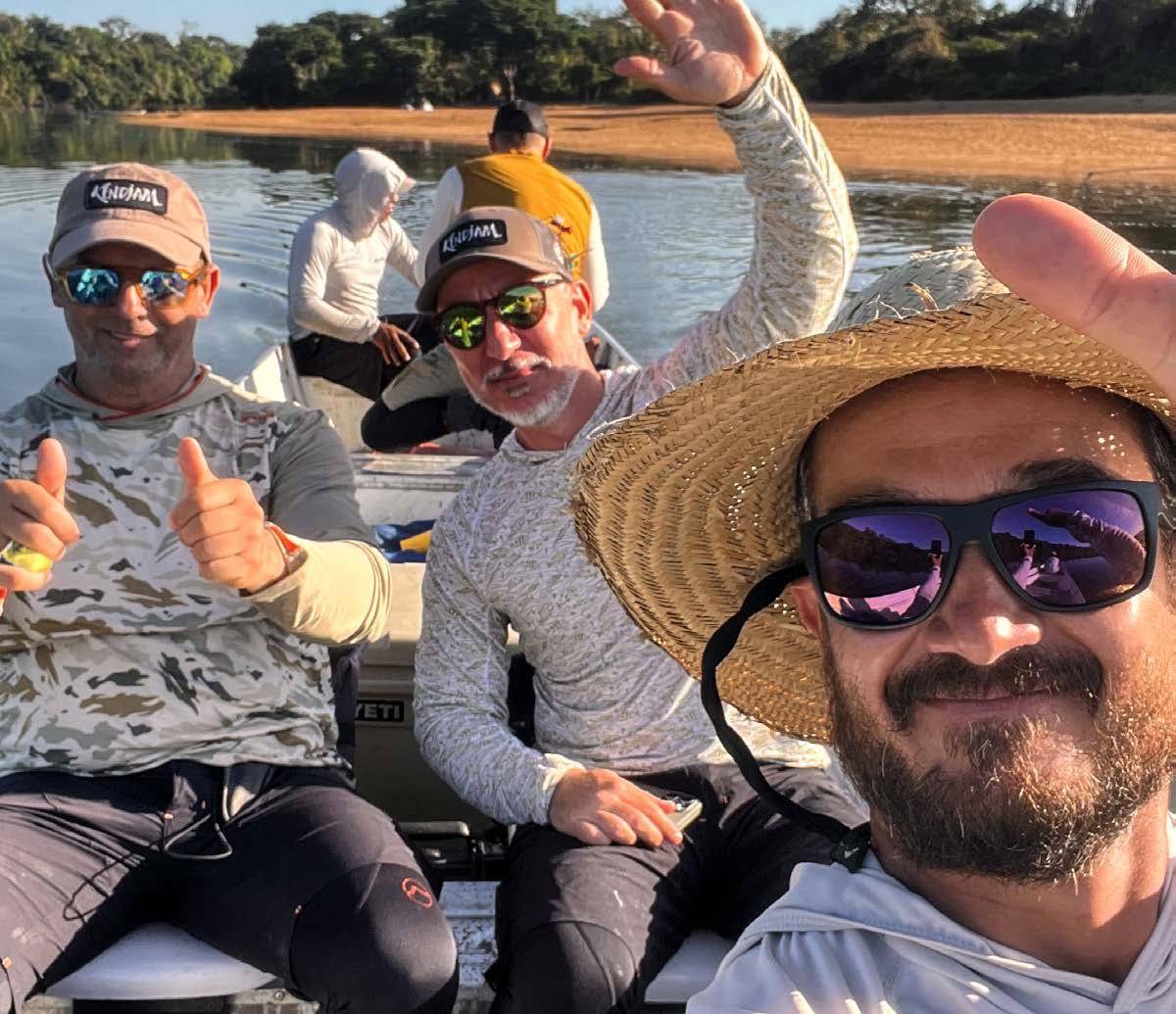 Als wir auf der Landebahn von Kendjam landeten, wurden wir von unseren Guides und einer Delegation der Kayapó mit offenen Armen empfangen. Es war uns eine Ehre, als allererstes dem Häuptling Beprere vorgestellt zu werden. Nach einer weiteren zweistündigen Bootsfahrt flussabwärts auf dem atemberaubenden Iriri-Fluss erreichten wir die Lodge. Mit Getränken, Snacks und einer Führung fühlten wir uns gleich wie zu Hause. Der Charme der Lodge ist unverkennbar und wir fühlten uns von Anfang an wohl. Unser erster Tag endete mit dem Auspacken der Koffer und den Vorbereitungen für unser Fliegenfischer-Abenteuer.