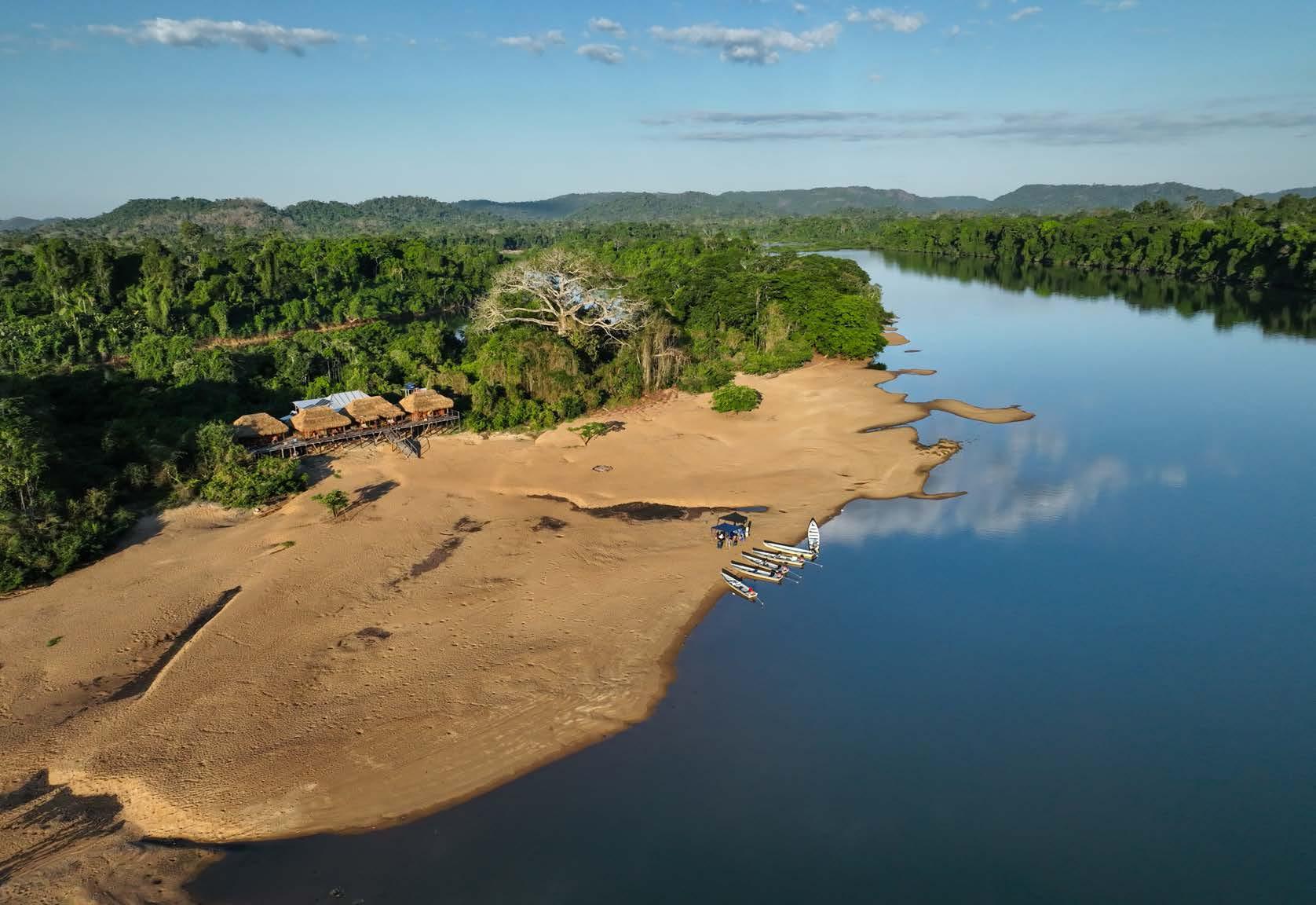 Kendjam is situated in one of the most secluded corners of the Brazilian Amazon, within the Mekragnoti Indigenous Territory, 550 miles southeast of Manaus. The Iriri River originates at the border of Mato Grosso and the state of Para, meandering over 800 miles through the northeastern reaches of the Brazilian Amazon until it merges with the Xingu River. It‘s the most protected river in the southern Brazilian indigenous lands and ecological reserves.