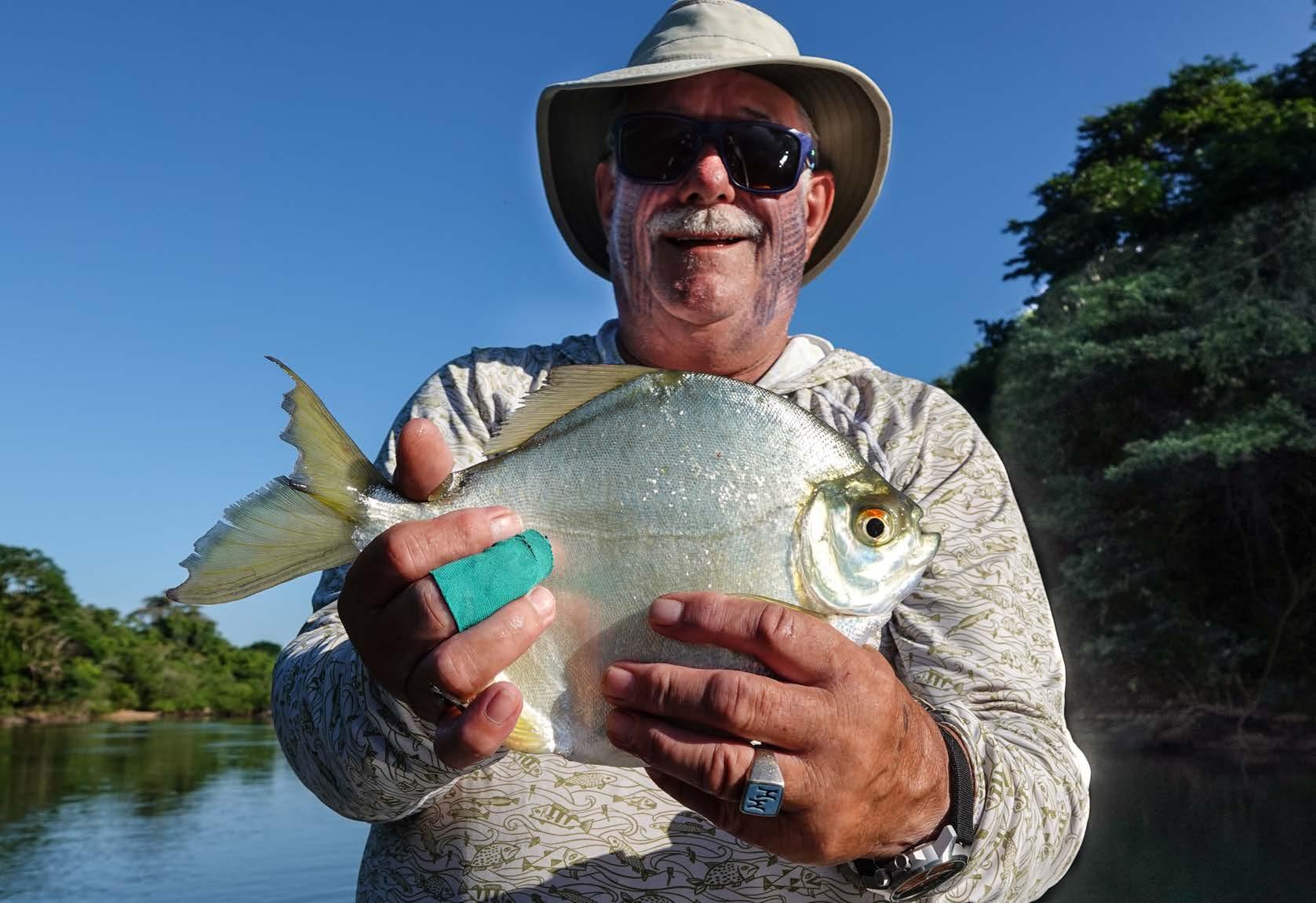 An jedem Tag unseres Abenteuers konnten wir sieben bis acht verschiedene Arten fangen. Der Iriri-Fluss beherbergt mindestens drei verschiedene bekannte Pacu-Arten. Der Pacu springt aus dem Wasser, um Insekten zu fressen, und wir fischten mit Trockenfliegen, Netzen, Nymphen auf Sicht flussaufwärts watend mit 5er-Ruten auf ihn.