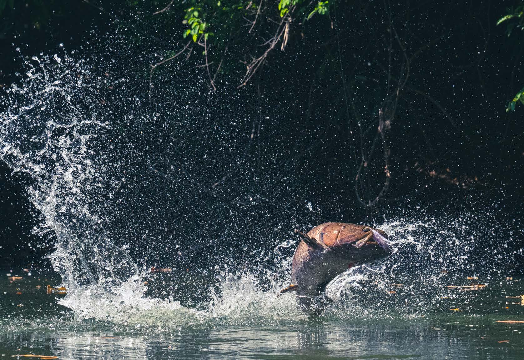 Eine weitere interessante Art, der wir begegnet sind, ist der Matricha, einer der stärkste Fisch des Dschungels. Er ernährt sich von Früchten, Blumen, Insekten und anderen Fischen, was ihn zu einem idealen Ziel für die Trockenfliegenfischerei macht. Und dann waren da noch die Bicudas, die mit ihrer Körperform und ihrem Turbo-Schwanz an Barrakudas erinnern, was sie zu „schnellen Läufern‘“ des Iriri-Flusses macht. Auch ein richtig aggressives Raubtier an der Wasseroberfläche.