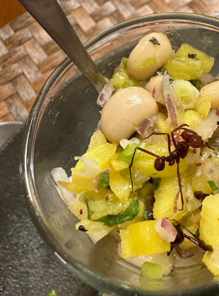 Die kulinarische Vielfalt des Amazonas überraschte uns mit exotischen Genüssen, darunter die besondere Spezialität aus einem Haubenrestaurant in Manaos – jene Ameisen im Essen, die mit ihrem erfrischenden Geschmack nach Lemongrass begeisterten.