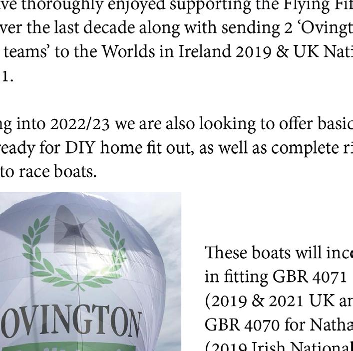 As at the time of writing (December 2021), the UK website had no second-hand boast listed for sale of any age! This is a first. One cause may be a production squeeze at existing builders and not enough new builders, the days of the “home built” Flying Fifteen being long gone. This is not the only place you will see this mentioned in this edition.