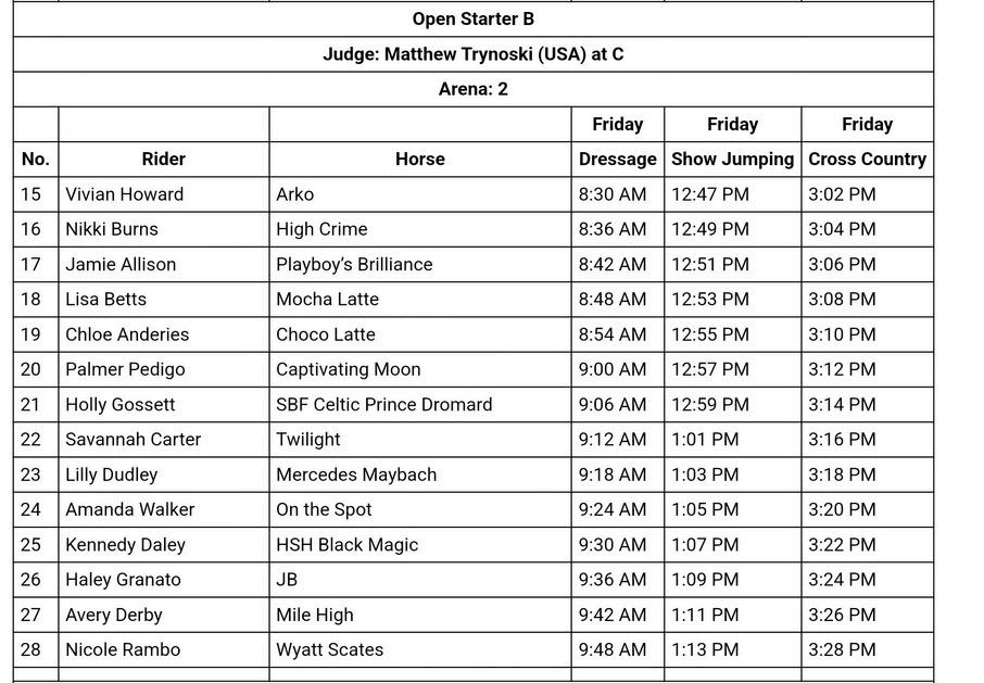 Starter HT SJ & XC: 12:15pm - 1:15 pm 2:30 pm - 3:30 pm