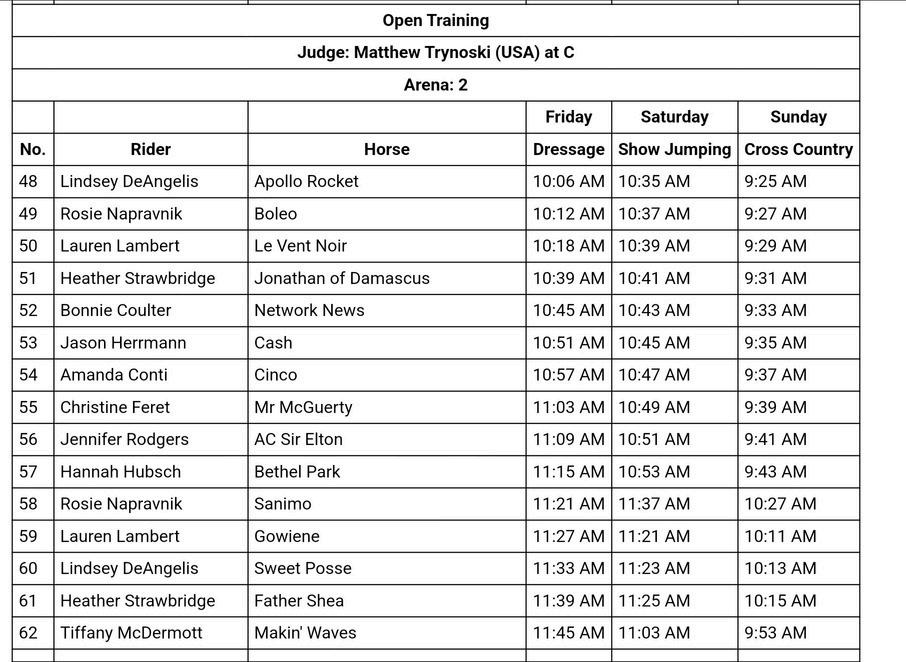 Our cool party is of course happening this year! Competitors have a ticket in their packet- please come and enjoy dinner from Mark’s Feed Store and win some cool prizes. Extra tickets are available at the secretary’s office. Our last two prizes are always free stabling and free entry for 2024!! Also... be sure to vote for your choice for our Flying Cross Farm Spirit Award. Generosity, kindness, community spirit and a sense of adventure! Nominate the rider, parent, groom, or friend with you who embodies that spirit! We will put a box at the secretary's office.