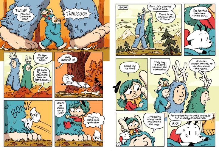 Hilda and her new friend, Burku the giant are enjoying playing together in the Wilderness. There is just one thing that would make everything more fun... snow! It just so happens that Twig has accidentally woken the Ice Man, unfortunately, that means there's a lot more than a snow flurry headed straight for Hilda!
