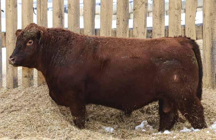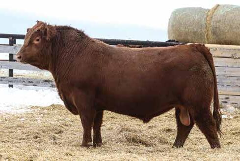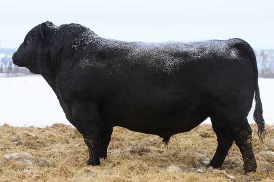 A bull we sourced from Running JR Ranch at Swift Current. He was the high selling choice lot that year. AVG BW on his progeny so far is 80 lbs with AVG WW Ratio of 106. The females off him have very tidy udders, good feet, & decent milk and some added length