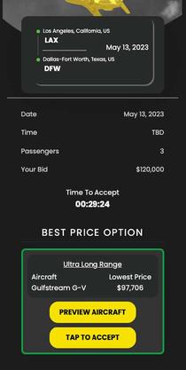 Ourleading-edgetechnologyisgame-changing.TheFlyHouseAppisaplatformthatcanbedownloadedtoauser’smobile device,tabletoraccessedviaacomputerwebbrowser.CharterersaccesstheFlyHouseApptospecifytheamountstheywanttopay forflights.Onceachartererinitiatesabooking,areverseauctionbegins,withownersturningtotheFlyHouseApptoofferresponsive bidswithin5minutes.Theresult:thelowestcharterairfaresavailableindustry-wide noothercompanycomesclose towhatFlyHousehastooffer.
