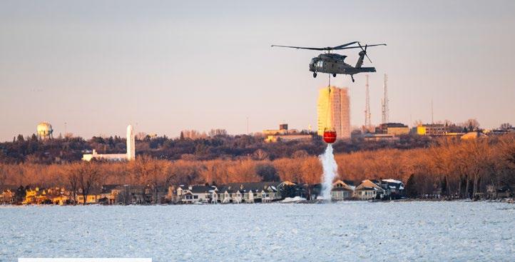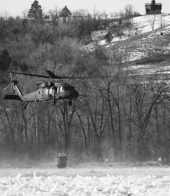 The North Dakota National Guard launched an aerial operation to respond to an ice jam on the Missouri River in Bismarck, Feb. 29. (National Guard story by Sgt. Michaela C.P. Granger and photos by Staff Sgt. Samuel Kroll, North Dakota National Guard Public Affairs Office)