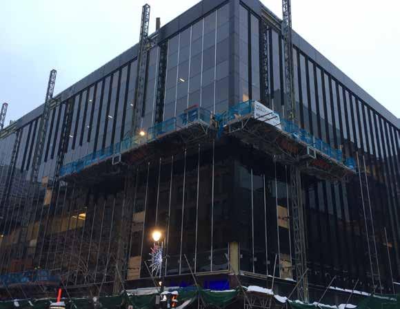 Another challenge involved access. The one of a kind glazing system was pre-glazed, and the finished work had to be completed from the exterior of the building. We solved the problem with specially designed swing stages, while some areas remained accessible by bosun chairs only.