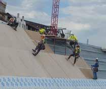Foreman Jorge Garcia, Jose Garcia, Agustin Mejia, Juan Cabrera and DeQuan Davis from Baltimore lent a helping hand for the re-roofing, new roofing, and architectural panels work at the ICR Discovery Center in Dallas for customer HCBeck, Ltd.